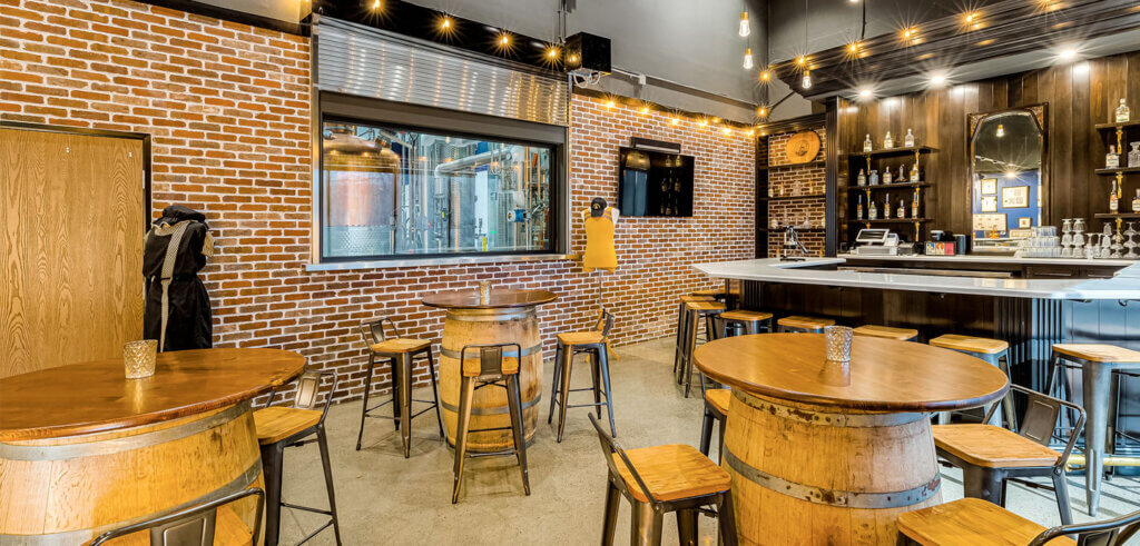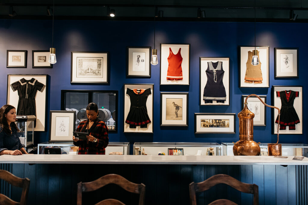 JJ Pfister was a dream realized for Brian and his parents, Kevin and Gail, blending family heritage with craft, chemistry, and hospitality. The tasting room and distillery draw from the family’s San Francisco roots—particularly the JJ Pfister Knitting Company, known for producing the first wool female swimsuits on Polk and Ivy in the early 1900s—informing the palette, materials, and storytelling throughout. Navy, white, black, and brass establish a refined tone, while copper stills and curated displays of vintage swimsuits, catalogs, and posters connect past and present, with a logo that references a knitting machine to unify craftsmanship and distilling heritage. The layout balances production, guest experience, and storytelling, coordinating brewing and distilling equipment with the bar and museum-style displays to create a flexible, engaging environment. Locally sourced ingredients—including organic Klamath Basin potatoes—are highlighted within a setting that blends historic San Francisco character with a modern sensibility, resulting in a space where legacy, design, and production come together seamlessly.