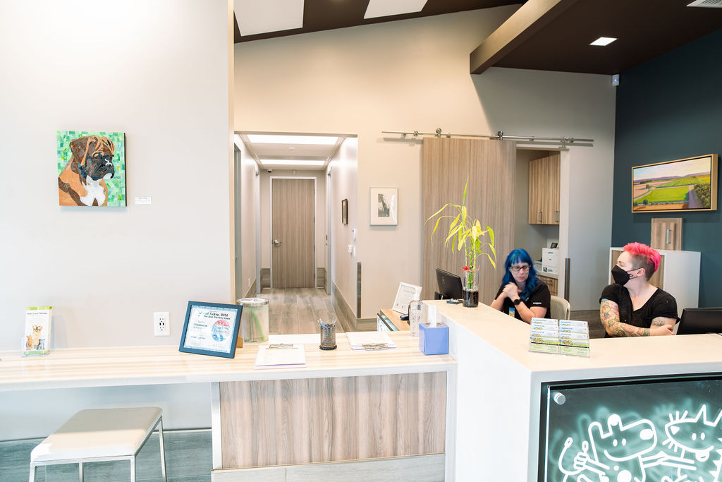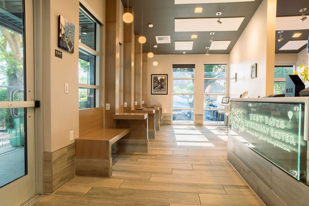 West Davis Veterinary Clinic is a thoughtfully expanded and remodeled facility in Davis, California, designed to bring together operational efficiency, patient comfort, and a calm, welcoming aesthetic. The project transforms an existing building with the addition of second-floor office space, creating a bright, modern clinic with separate entries for cats and dogs that support intuitive circulation and reduce stress for pets, their people, and staff. A cat-friendly approach is carried throughout, reinforcing ease and thoughtful care at every stage of the visit. Inside, a warm, natural material palette, custom millwork, and subtle color accents add personality while maintaining a clean, professional feel, with high ceilings and abundant natural light creating an open, uplifting environment. Durable finishes and integrated fixtures support daily demands, while exterior elements—wood corbels, pilasters, and a Kynar roof—add depth and connect the building to its surroundings—resulting in a clinic that is both highly functional and carefully crafted, supporting exceptional care in a healthy, approachable environment.