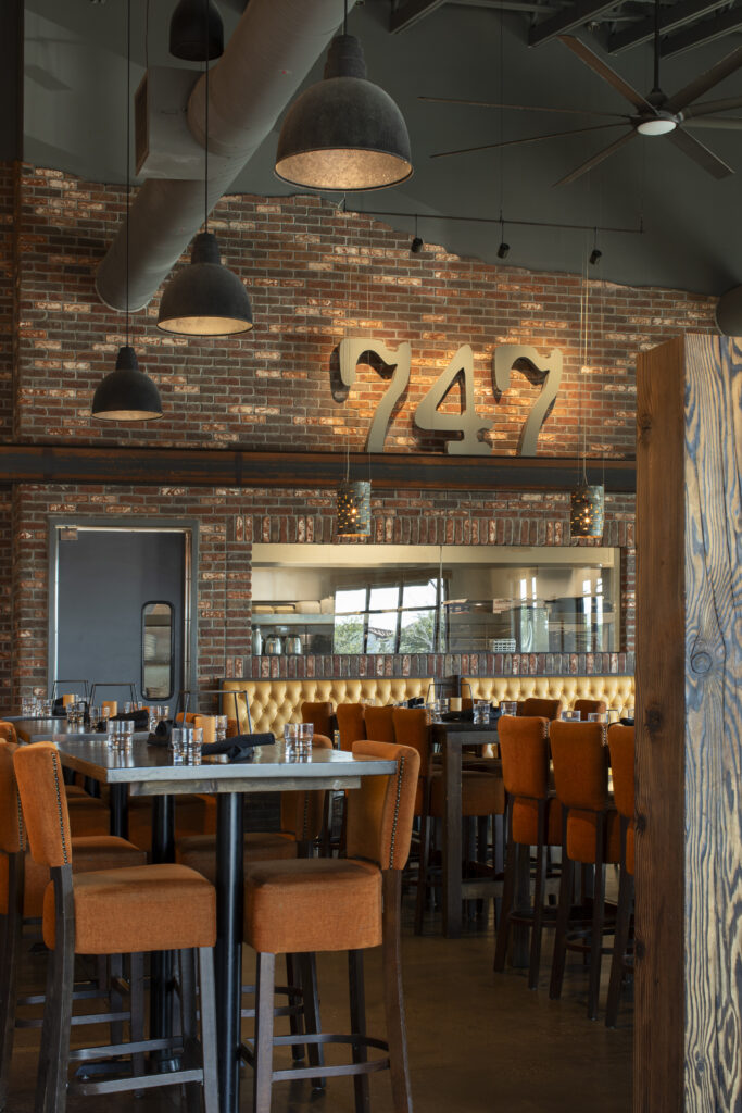 Kitchen 747 brings modern farmhouse vibrancy to the heart of Westpark in Roseville—blending warmth, industrial character, and community energy into a full-service restaurant designed for connection, from family gatherings and after-school hangouts to a relaxed night out. Rooted in the vision of owner Juli Hilton, the space is a neighborhood destination where flexible dining and social zones—including a rooftop patio overlooking the park—create multiple ways to engage with the lively outdoor setting. Fire pits, a cornhole field, and space for live music extend the experience, while screening elements preserve green views and maintain a strong connection to the park. Inside, the design optimizes the kitchen and heart of the restaurant for visual connection, circulation, and workflow. Signature branding moments and material selections—including exposed steel beams, cantilevered forms, industrial-scale fans, retro farm lighting, and reclaimed wood—balance vintage warmth with a contemporary edge, shaping layered zones that support a range of experiences—from bar seating and booths to a large indoor/outdoor space with roll-up garage doors. Kitchen 747 is designed to feel like home—welcoming, energetic, and all about community.