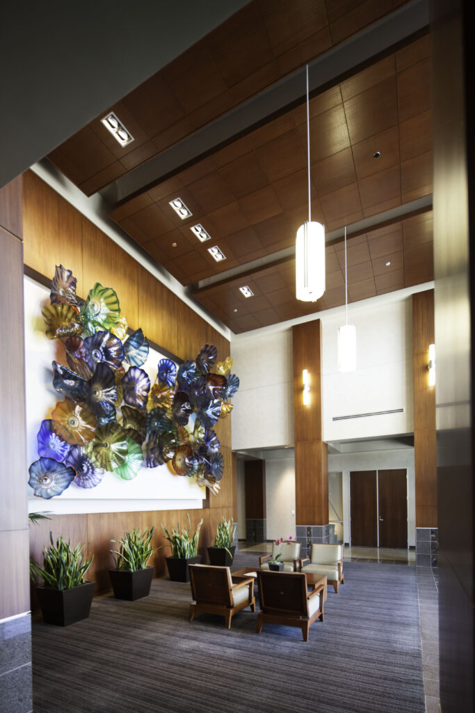 Stone Point Corporate Center began as a legacy vision of three five-story office buildings along the Eureka corridor, where our team led both design and planning to shape a campus that is efficient, functional, and visually distinctive. An adjacent low-rise district introduces a subtle European influence, with connected walkways and inviting storefronts that soften the scale and create a pedestrian-friendly environment where Class A workspace and village-like amenities come together—allowing daily activity, dining, and work to intersect naturally. The first high-rise tower emerged as a defining element in Roseville’s skyline, pairing refined architecture with efficient planning, while interiors elevate the experience through rich woods, figured stone, and carefully curated details that create a warm, sophisticated environment. A two-story common area anchors the entry with a striking glass art mural, bringing a sense of arrival and hospitality-inspired scale—resulting in a project that remains a clear expression of the client’s vision: timeless, connected, and purposefully designed.