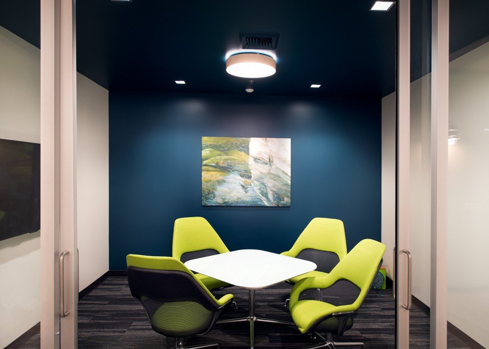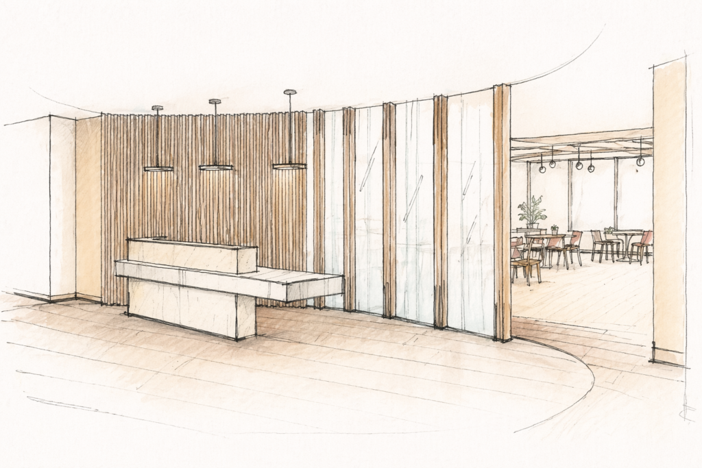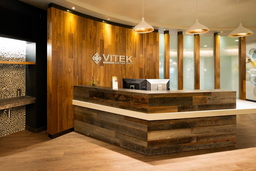 Selected to partner with Vitek Mortgage Group, we reimagined their headquarters through a comprehensive interior design scope organized around a central, park-inspired commons—a space reflecting their mission of connection, growth, and service—where an early design blitz aligned leadership and departments around a shared vision, creating clarity and momentum from concept through completion. The first-floor plan brings teams together in a cohesive, uplifting environment that balances focused work areas with hospitality-driven gathering zones, with reception anchoring the entry and providing clear sightlines to each department to reinforce transparency and connection from the moment of arrival, while circulation radiates from this plaza-like core to create intuitive pathways that encourage daily interaction. Departments are organized as distinct neighborhoods, each expressing its function while contributing to a unified whole, with executive offices and training spaces integrated seamlessly into everyday work areas; grass-inspired flooring bands and paver-like textures define shared zones, brick elements reminiscent of neighborhood storefronts add structure and continuity, and custom furnishings with a curated art program bring warmth throughout—resulting in a brand-driven workplace that strengthens culture, supports collaboration, and positions the organization for continued growth.