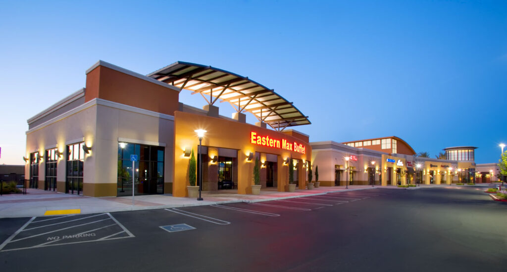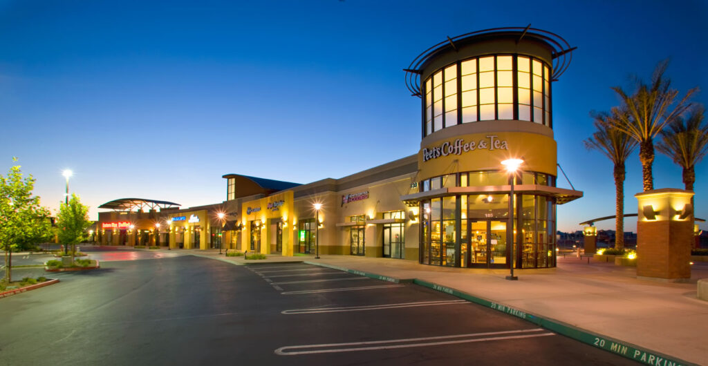 Park Plaza Retail Center makes a bold statement in the neighborhood, with vertical elements that frame storefronts and establish a strong visual rhythm. Anchored by Nugget Market, the design blends an industrial edge with modern classical touches—arched forms, clean lines, and generous proportions—giving the center its distinctive character. In close collaboration with the City, circulation was carefully shaped to connect storefronts, pathways, and transit points into a seamless pedestrian experience that feels intuitive and inviting. Today, Park Plaza has become a neighborhood go-to, home to Peet’s Coffee, Mimosa House, and Massage Heights—a vibrant mix of daily essentials, local flavor, and community energy.